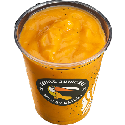 mango, banaani, luonnonjogurtti, inkivääri, maca, heraproteiini, appelsiini, jäitä