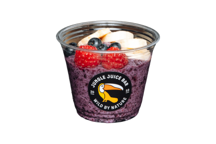luomu chia, suomalainen metsämustikka, kookos, pensasmustikka, vadelma, banaani, agavesiirappi